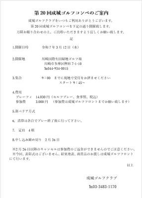 第20回成城ゴルフコンペ開催のお知らせ